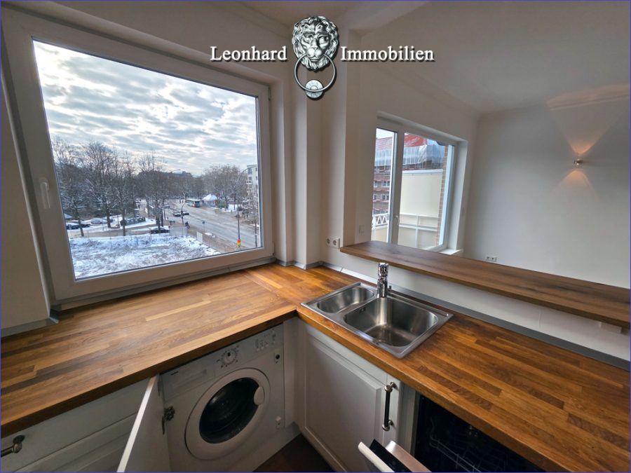 Die Wohnung wurde technisch und optisch konsequent auf einen modernen Stand gebracht. Ein wichtiger Punkt für den Alltag ist die vollständig erneuerte Elektrik, die in allen Räumen mit zahlreichen Steckdosen und Anschlüssen für Internet und Fernsehen ausgestattet wurde. Ein besonderes Augenmerk wurde auf das Badezimmer gelegt, das vollständig neu gestaltet wurde und sich nun als modernes Duschbad präsentiert. Das Küchenkonzept ist offen gestaltet und verbindet Kochen mit Wohnen, sodass man den morgendlichen Kaffee mit einem entspannten Blick auf den Mundsburger Kanal genießen kann. Ein neuer Backofen mit autarkem Kochfeld rundet das Bild geschmackvoll ab. Die dreifach verglasten Fenster sorgen zudem für eine hervorragende Isolierung und Ruhe in allen Räumen. Ein absolutes Highlight sind die maßgeschneiderten und beleuchteten Einbauten, die nicht nur praktischen Stauraum schaffen, sondern der Wohnung auch ihren individuellen und edlen Charakter verleihen.