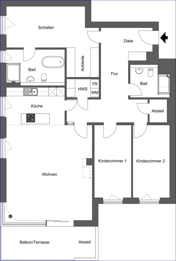 Bäder: 2 (u. a. mit freistehender Wanne, bodengleicher Dusche, hochwertigen Armaturen)