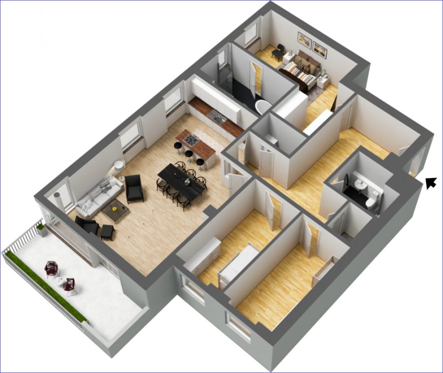 Fordern Sie unser Exposé an und erhalten Sie Zugang zur 360° Online-Besichtigung. So können Sie die Wohnung im 1. Obergeschoss bereits vorab in aller Ruhe erkunden.